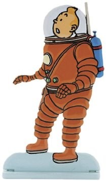 TENTEN - 2D METAL TINTIN EXPLORERS ON THE MOON FIGURINE 6,2cm. yüksekliğindeki el boyaması metal figürde Explorers on the moon sayfa 37 kare B1 esas alınmıştır. Tenten 2D metal serisi 18. yüzyıl "plat d'etain" kurşun figür çizgisindedir.