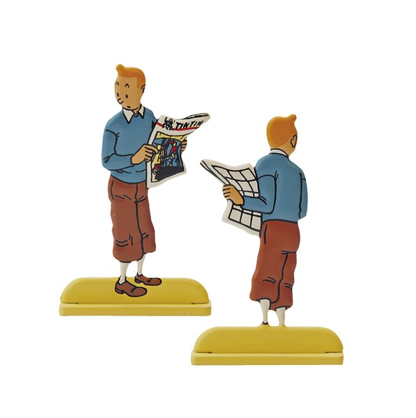 TENTEN - 2D METAL TINTIN HOLDING HIS NEWSPAPER FIGURINE 5,8cm. yüksekliğindeki el boyaması metal figürde 1946 Tenten mecmuası 13. sayıdan bir illüstrasyon esas alınmıştır. Tenten 2D metal serisi 18. yüzyıl "plat d'etain" kurşun figür çizgisindedir.