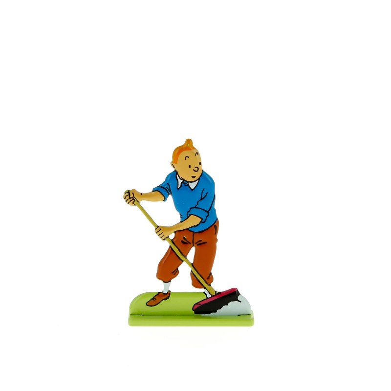 TENTEN - 2D METAL TINTIN SWEEPING UP ! 5,2cm. yüksekliğindeki el boyaması metal figürde Tintin Magazine sayı 12'den (1951) bir illüstrasyon esas alınmıştır. Tenten 2D metal serisi 18. yüzyıl "plat d'etain" kurşun figür çizgisindedir.