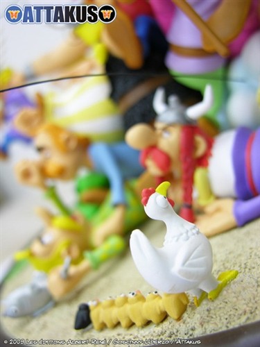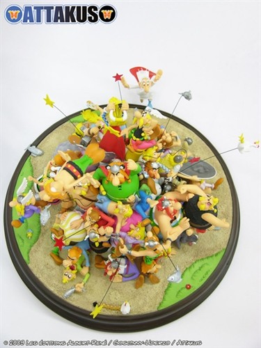 Porselen dioramada Asteriks, Oburiks, Büyüfiks, Şef Toptoriks , Kakofoniks , Eskitopraks, İdefiks ile birlikte 50'den fazla karakterin figürü birliktedir, iki ayrı parçadan oluşan kaide 360 derece sergilemeye imkan tanımaktadır.