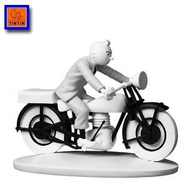 TENTEN - RESIN FIGURINES TINTIN with MOTORCYCLE 10 cm. yüksekliğinde resin figür. Figür , "Le Sceptre d'Ottokar" macerasını ve resin modeli anlatan 21 sayfalık kitapçık ile birlikte geliyor !