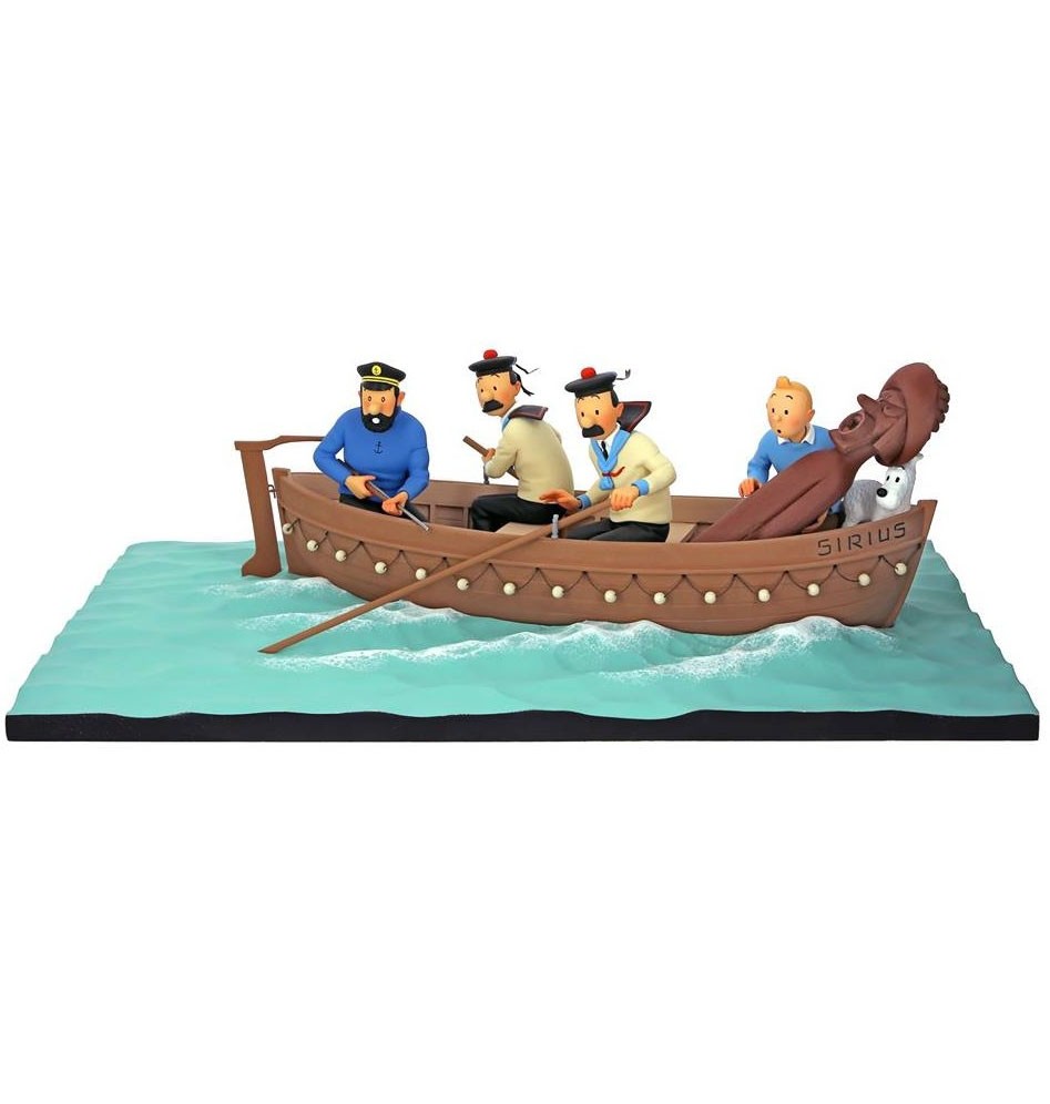 TINTIN - THE JOLLY BOAT SIRIUS 17cm. yüksekliğinde resin heykel. Zemin ölçüsü 28X51 cm. Üretim limiti 500 kopya ile sınırlıdır. Modelleme ve boyama dahil tüm üretim aşamaları Fariboles tarafından Fransa'da yapılmıştır.