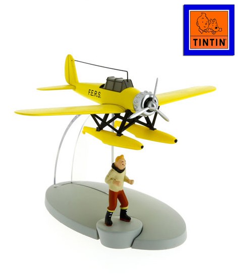YELLOW F.E.R.S. SEAPLANE - THE SHOOTING STAR 11,5 X 12,5 X 9 cm. ABS ve metal malzeme el boyaması uçak modeli şeffaf silindir kutuda Tenten figürü ile birlikte geliyor.